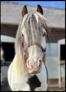 Pudding is stealing hearts all over the yard! He joined the yard in early 2026 and has now started his ridden career. He’s proving to be excellent on the lead rein and a thoroughly nice person, quiet and easy to handle on the ground. With striking blue eyes this lad has made quite the impression on our team! Make sure you say hello to Pudding if you see him in his stable!